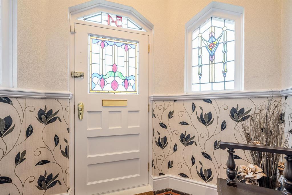 Porch - With feature stained glass door leading from the front of the property, quarry tiled floor, dado rail and further stained glass windows and door leading to entrance hall.