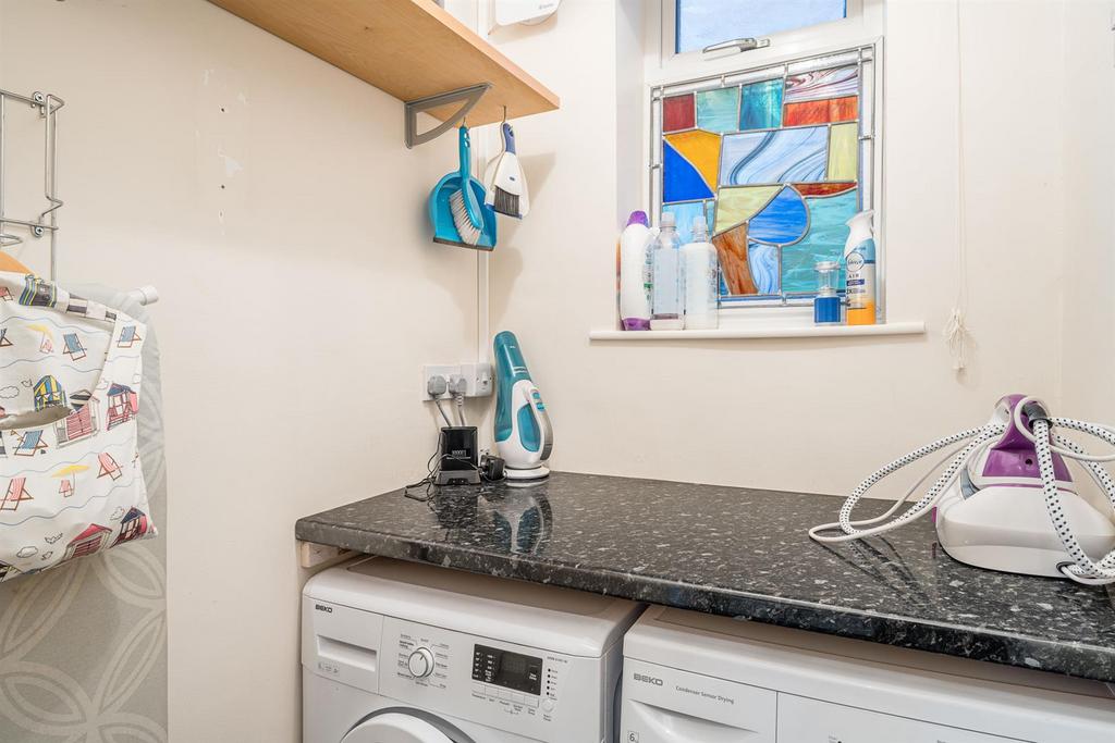 Utility - 1.88m x 1.50m (6'02 x 4'11) - Open from lobby, worksurface, plumbing for washing machine, space for tumble dryer, coving and double glazed window to rear with stained glass fixing.