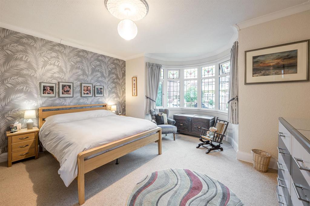 Bedroom One - 5.23m x 4.39m (17'02 x 14'05 ) - With a panelled door leading from the landing, coving, ceiling rose, complimentary wardrobes and drawers included in the sale, double glazed stained glass bay window to front and a central heating radiator.