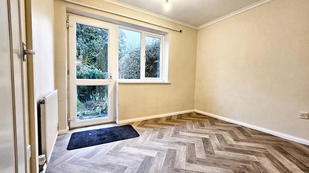 BEDROOM 2 (3.14m x 2.69m approx)(10'4" x 8'10" approx) with fitted carpet, ceiling coving, radiator, two power points, rear window and glazed door to garden.