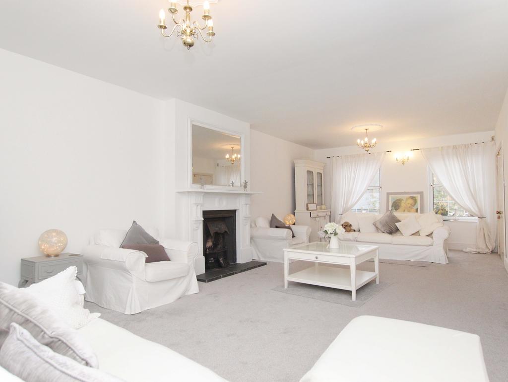 To the right of the hallway, a large lounge with carpeted flooring and a original victorian fireplace awaits, complete with dual-aspect windows that fill the space with natural light. This room offers an inviting atmosphere, perfect for relaxation.