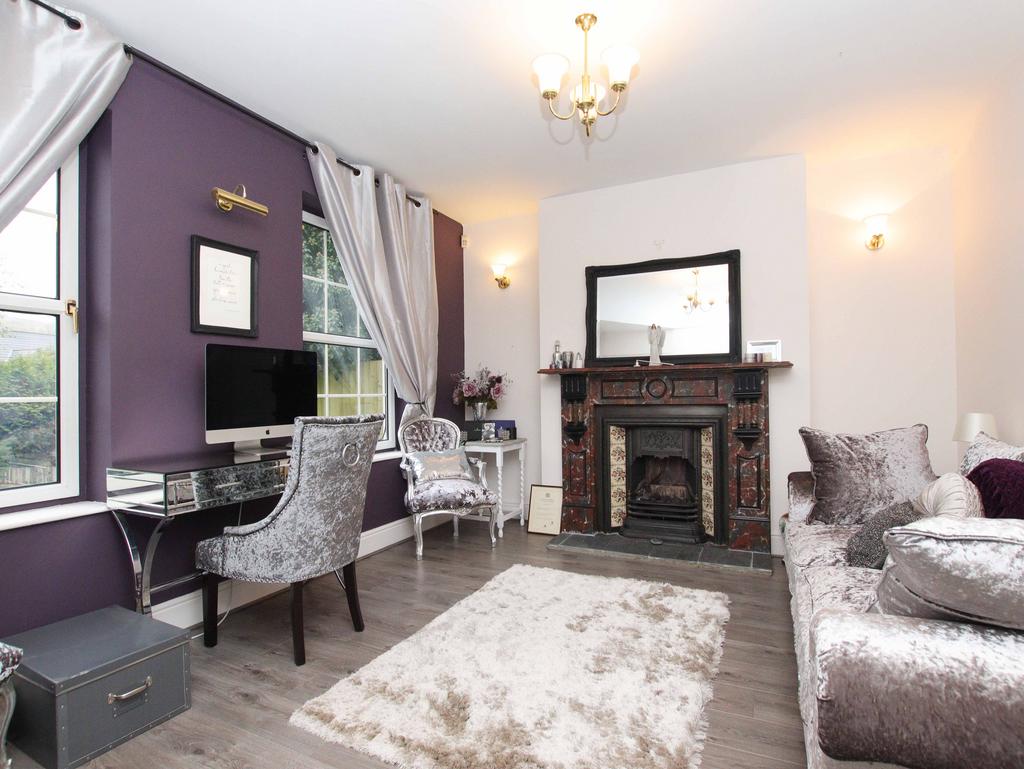 Adjacent to the lounge, you’ll find a second reception room, featuring laminate flooring, a charming fireplace, and dual windows that provide an abundance of light and a welcoming, airy feel.