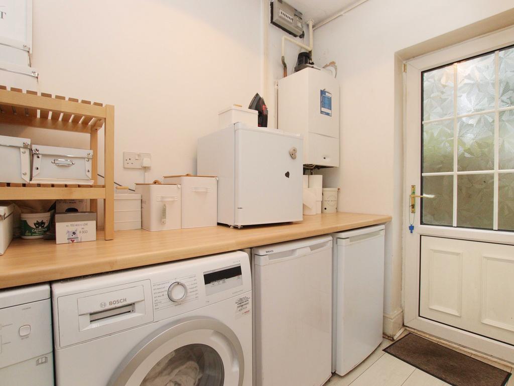 The home also includes a separate utility room adjacent to the kitchen, providing additional access to the garden, as well as a convenient ground-floor WC.