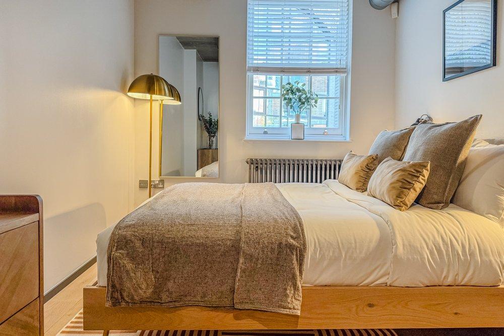 This spacious studio apartment is a haven of comfort and luxury, combining timeless elegance with modern amenities. With its high ceilings and large sash period windows, natural light floods the living space, enhancing the elegance of the decor. The UK king size bed promises a restful night's sleep, while the spacious bathroom, adorned with deluxe toiletries from Percy & Reed, adds a touch of indulgence. The full kitchen, equipped with a coffee machine and a selection of coffee pods and teas, is ideal for making your own meals and there is the addition of Smart TV, heating and air conditioning as well as a laptop safe for added security.