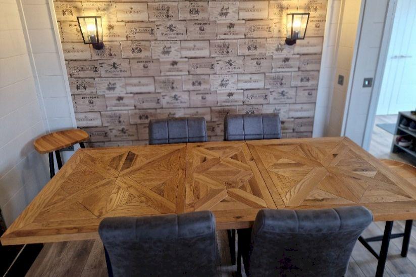 Fully furnished interior with wraparound decking and a Hot tub. The kitchen includes; Full size dishwasher, Fridge Freezer, Microwave with grill, Ceramic hob, Extractor hood, Full size oven an Washer dryer.