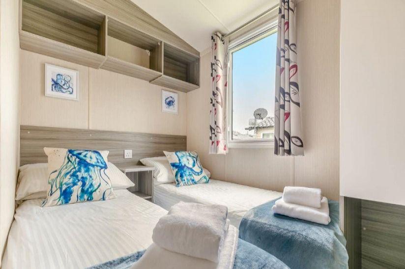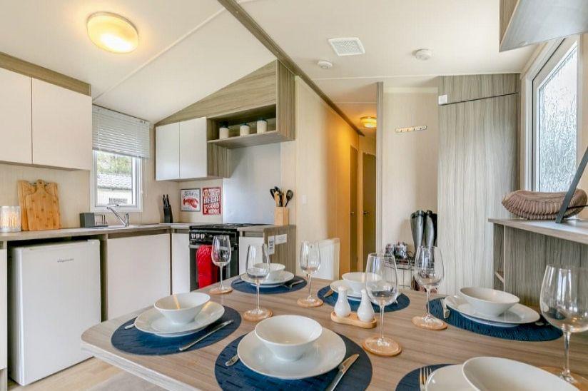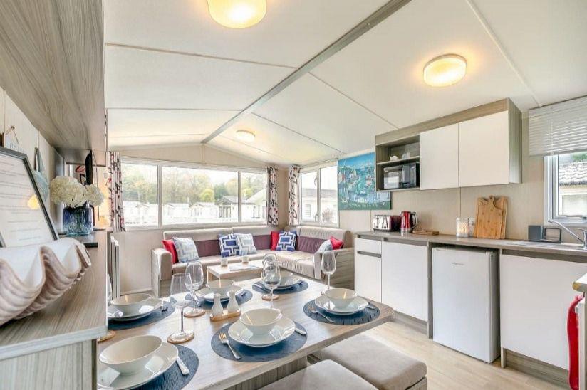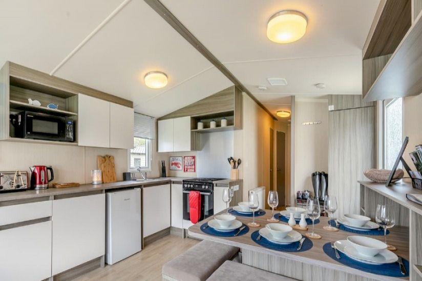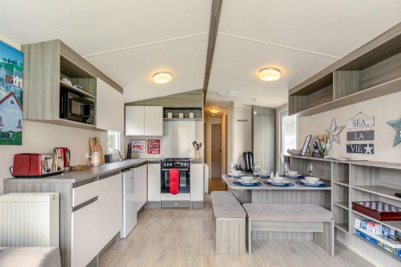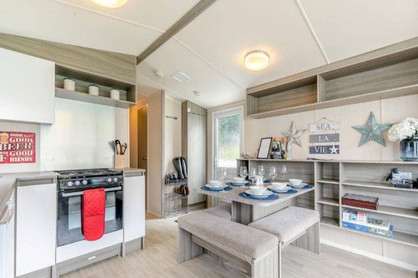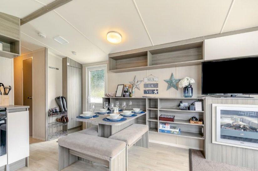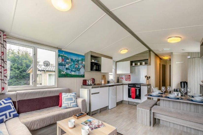 A well appointed and well equipped static caravan comfortably accommodating 6 guests. Located in the picturesque Pentewan Valley, offering serene woodland walks and easy access to the charming harbour town of Mevagissey and the bustling market town of St Austell. This well-equipped, detached static caravan provides three comfortable bedrooms, accommodating up to six guests. Beautifully presented throughout, it features a fitted kitchen with all the essentials, a family shower room, and an open-plan living space, perfect for relaxing. With gas central heating, youll feel cosy all year round. The bedrooms ensure a restful nights sleep, while the living area, with its TV and inviting seating, is ideal for family downtime. Outside, youll find a private parking space, a large terrace perfect for al fresco dining, and a grassy garden area.