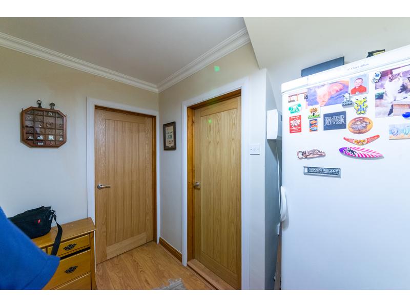 Approximate size 4.20m x 2.50m. Fitted kitchen in a honey Oak finish to include both free standing and wall mounts units together with a breakfast bar and stools, built in eye level double oven, built in electric hob with an extractor fan above, built in dish washer and fridge, plumbed for a washing machine, granite effect work tops around, tiled to the wall mounted units, multiple power points, stainless steel sink unit, tiled flooring, radiator, plain plastered ceiling with coving around, and a double glazed window and door to the rear.