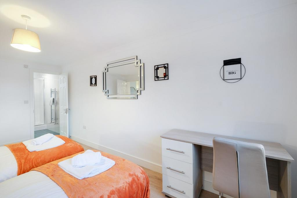 Pinewood Apartment is a two Bedroom two bathroom apartment with parking by Arista Living,Located on the ground floor, 3 minute's drive from Pinewood Studios, This property comes fully furnished for a short or long-term stay, offering one super king-sized bed and one king-size bed, with open plan Lounge & Kitchen/Diner, Ideal for a few nights or a few months then look no further. Located conveniently from the M40 and the M25 with easy access to surrounding towns., This property comes fully furnished for a short or long-term stay, offering one 'super' king sized bed and one king size bed with the option to split them into single bed's, Open plan Lounge which offers a sofabed to sleep two, 50" Smart TV and super fast broadband, fully equipped Kitchen & Dining Area which comprises of a six-seater dining table and everything you need to cook a full meal or prepare a small snack, The bedrooms have plenty of storage, a double wardrobe and bedside tables, if you are looking for a short or a long term stay near to pinewood studios then please look no further and book today.