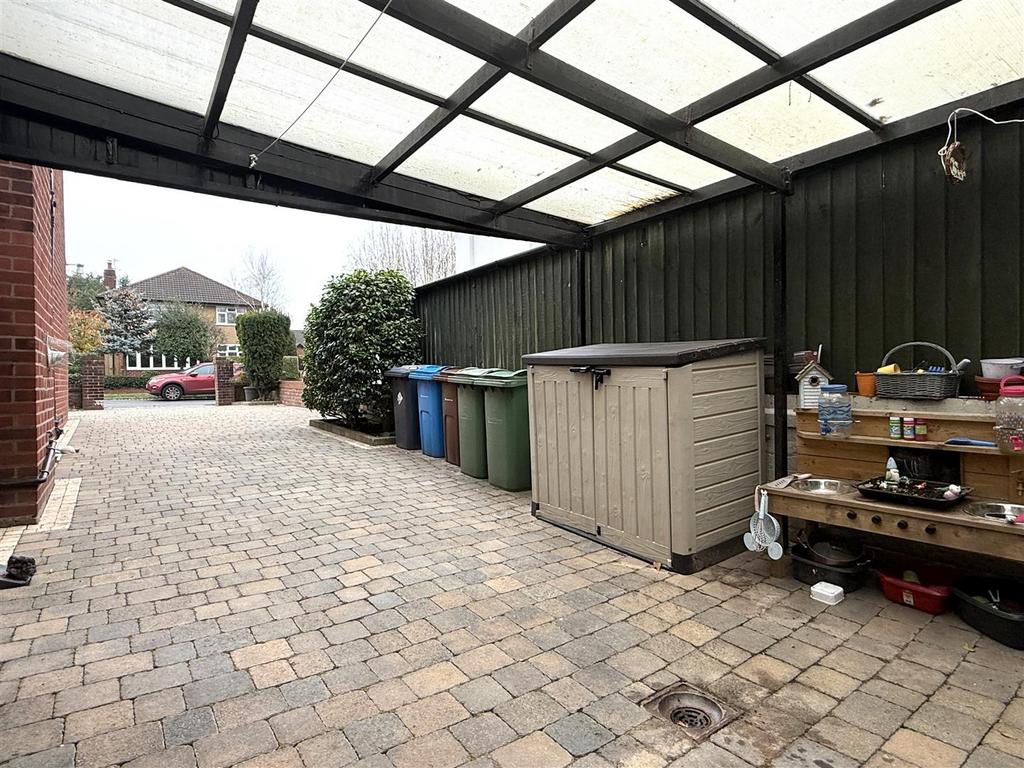 Outside - To the front of the property is a walled garden which has been block paved to provide excellent off road parking with side flower and shrub borders. The matching driveway continues down the side of the house, with further mature side shrub border concealing a useful bin store area. Leading to a covered Car Port 14'7 x 13'3 with side wall light and garden tap and on to the Garage. Timber gate gives access to the rear garden.