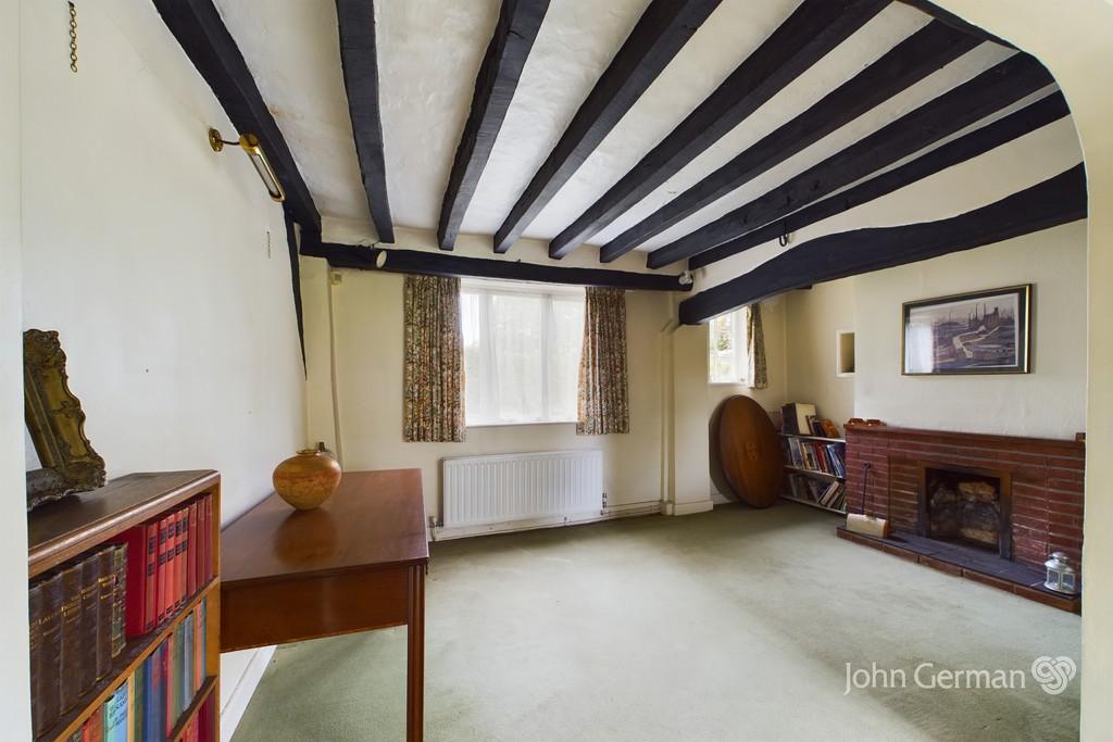 The dining room has a large window overlooking the rear garden, beamed ceiling and an opening through to the sitting room. The sitting room has two windows overlooking the front garden, beamed ceiling and an open fire with brick surround.