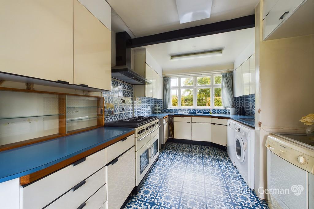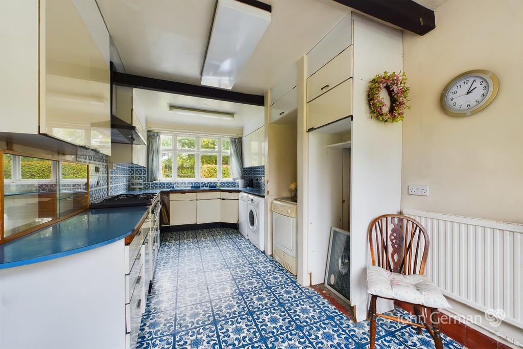 The kitchen sits on the opposite side of the entrance hall and has double aspect windows, fitted with a range of base and eye level units with plenty of space for appliances. A latch door leads off the kitchen to the second staircase leading to the first floor.