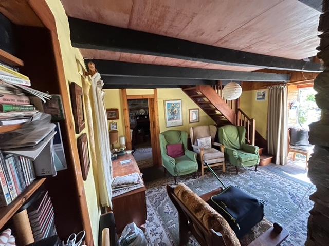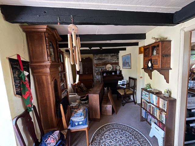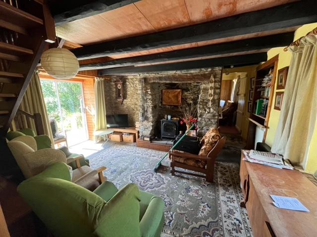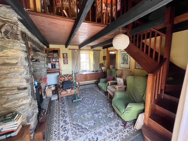 Tŷ Gwyn is currently a ‘long house’ style stone/slate cottage with mezzanine loft area and lean-to sun lounge to the rear aspect. Located within close proximity in one corner of the front garden is a stone/slate outhouse used for domestic storage, utility room and tool store, and planning consent has been obtained to adapt and adjoin it to the cottage itself, together with addition of an orangery style extension to the rear aspect. Gravelled compact front garden area, and path leading around to grassed garden area to the rear. Grassed off road parking area for 2 – 3 cars to the fore. Planning consent has recently been obtained to convert/extend the Building to a 3 bedroom Dwelling with extra accommodation.