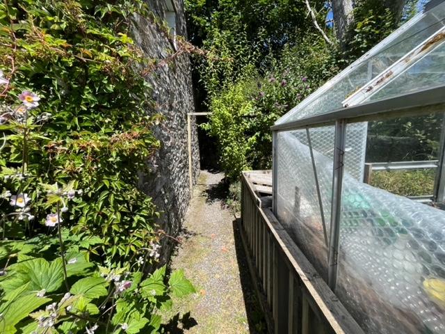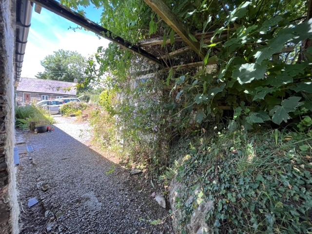 Gently sloping grassed off road parking area, which has a public footpath leading down along the boundary wall/hedge to gate into boundary field at the rear aspect (path is often used). Timber wicket fence to side and iron pedestrian gate into: Gravelled Garden Area in need of discerning gardener’s attention, but with shrubs, and trimmed coniferous hedgerow on roadside aspect. At the far end of the garden is a stone/slate Outhouse with timber decking ramp to its fore. Two external doors with access off to: Store Room 6’7 x 5’7 with window to side and rear. Utility 7’8 x 5’7 with window to rear, double power point, plumbing for washing machine, space for 2 other appliances. Separately accessed ‘L’ shaped Tool Store (bounding with Utility).