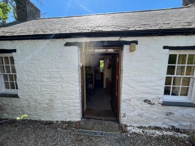 Tŷ Gwyn is currently a ‘long house’ style stone/slate cottage with mezzanine loft area and lean-to sun lounge to the rear aspect. Located within close proximity in one corner of the front garden is a stone/slate outhouse used for domestic storage, utility room and tool store, and planning consent has been obtained to adapt and adjoin it to the cottage itself, together with addition of an orangery style extension to the rear aspect. Gravelled compact front garden area, and path leading around to grassed garden area to the rear. Grassed off road parking area for 2 – 3 cars to the fore. Planning consent has recently been obtained to convert/extend the Building to a 3 bedroom Dwelling with extra accommodation.