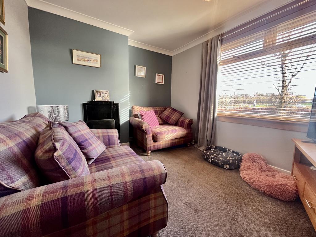 Spacious lounge with window to front, electric fire / fireplace, carpeted flooring and access to inner hall.