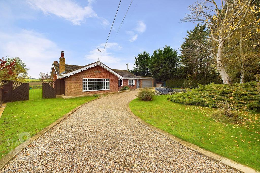 Guide Price £375,000 - £400,000. Located within an ENVIABLE RURAL POSITION BACKING ONTO OPEN FIELDS is this DETACHED BUNGALOW offering a generous plot of 0.28 ACRES (stms) and a generous and flexible footprint. Internally you will find a central hallway with porch entrance, sitting room with WOODBURNER and separate dining room leading off the sitting room. The kitchen to the rear has been recently refitting to a modern spec. There are then THREE AMPLE BEDROOMS as well as a large WET ROOM and separate bathroom completing the internal accommodation. Externally you will find gardens to the front and rear with an open aspect to the rear overlooking fields. There is an IMPRESSIVE SWEEPING 'in out' DRIVEWAY to the front with the addition of double garage, store room and workshop.