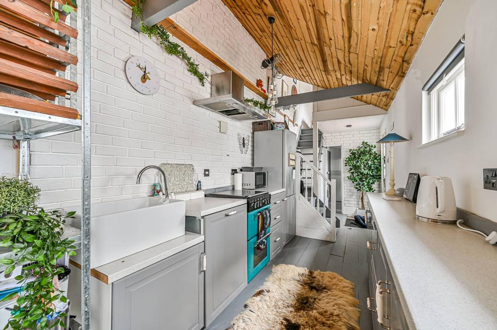 - Walkthrough kitchen fitted with a butler sink, dishwasher, and plenty of cupboard space, with room for additional storage if needed.