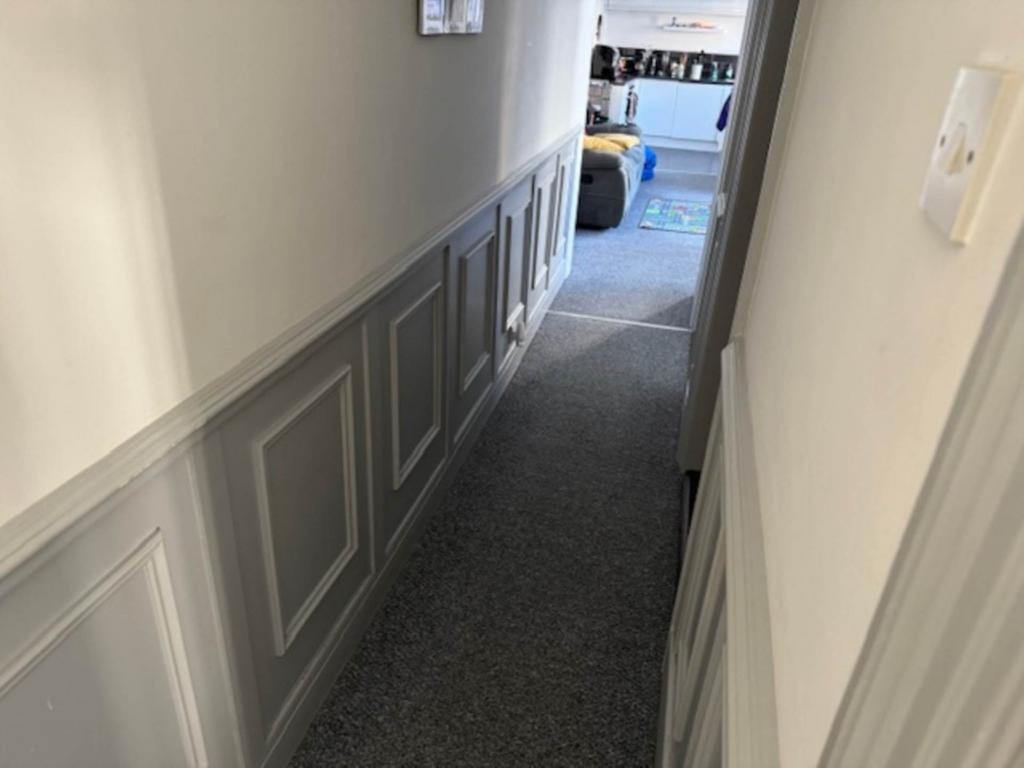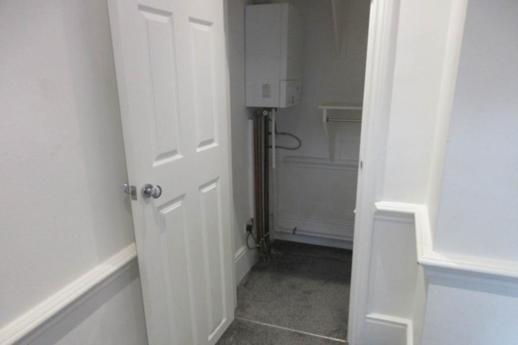 Double glazed window to rear aspect. Radiator. Fitted carpet. Dado rail. Ornate coving. Recessed spotlights to smooth plaster finish ceiling. Large storage cupboard housing combination boiler.