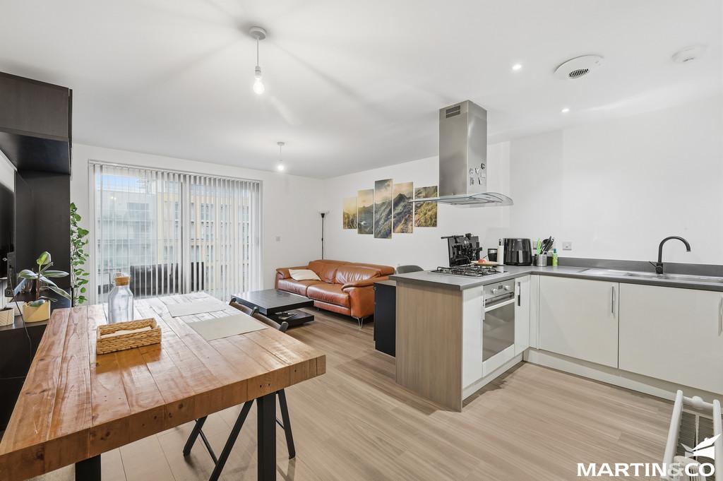 The flat boasts an open-plan kitchen and reception room, perfect for modern living. The kitchen is well-equipped, and the reception room enjoys access to a balcony, providing a great spot to relax and enjoy the outdoors.