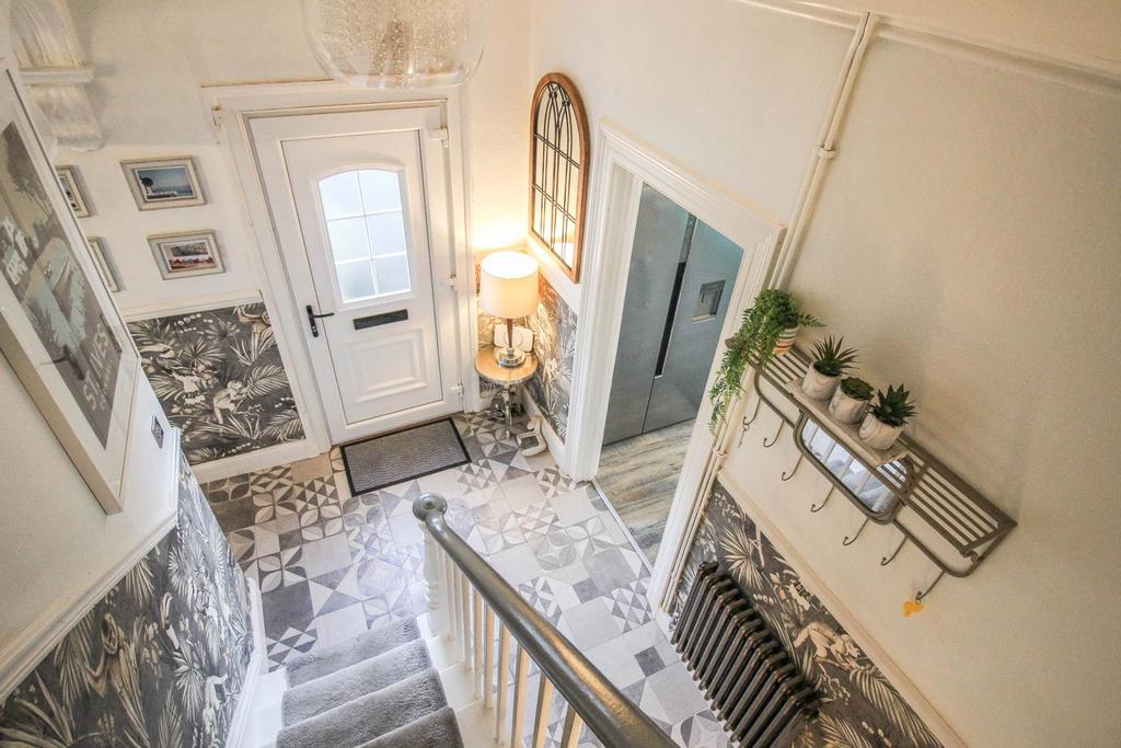 Front aspect uPVC double-glazed window. Smooth coved ceiling with central light. Access to loft with pull down ladder. Feature panelled wall. Feature cast iron radiator.