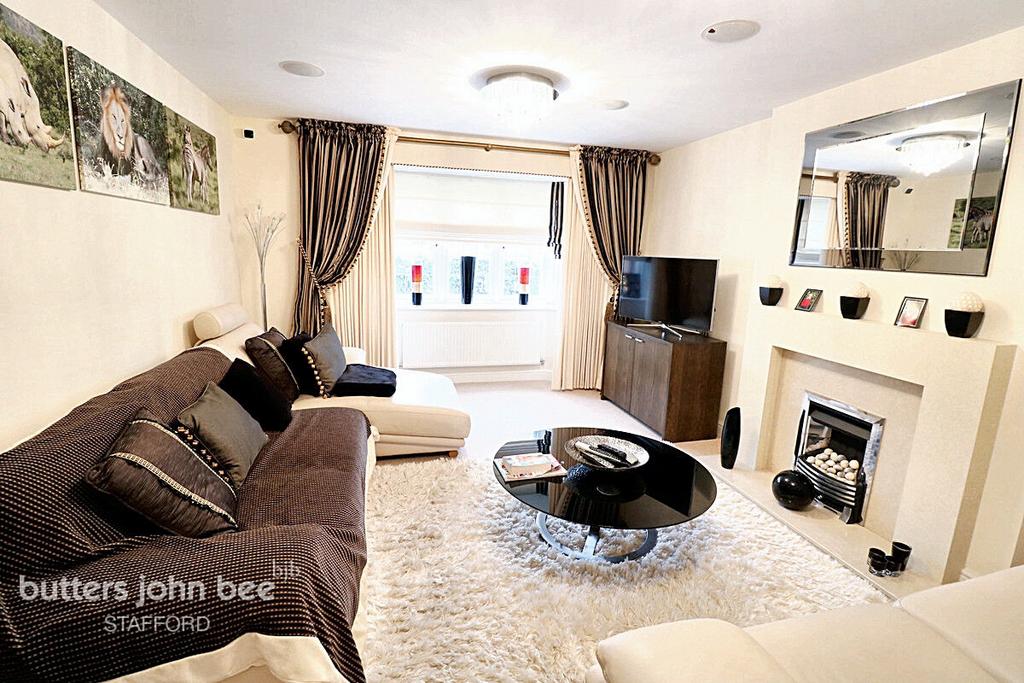 Ideally located just a stone's throw from Stafford town centre, with easy access to the M6, A34, and a wealth of local amenities and excellent schools, the location couldn’t be better. At the front, a double driveway and matching double garage offer plenty of parking. The landscaped, low-maintenance AstroTurf garden ensures minimal upkeep, even for those without a green thumb.