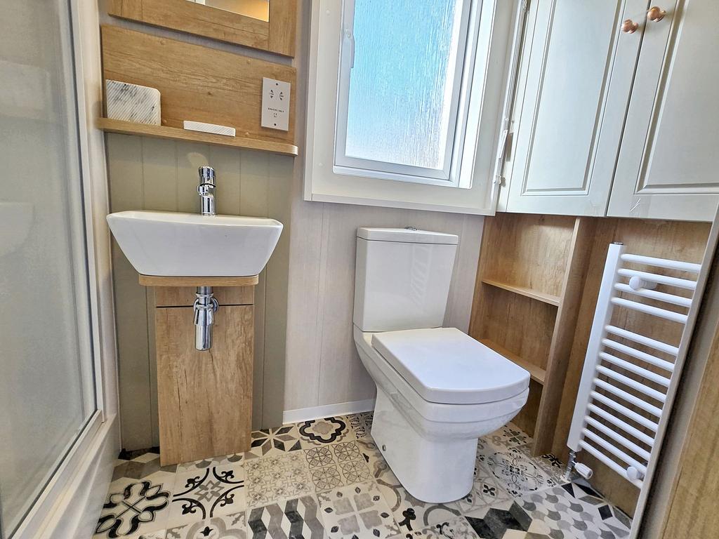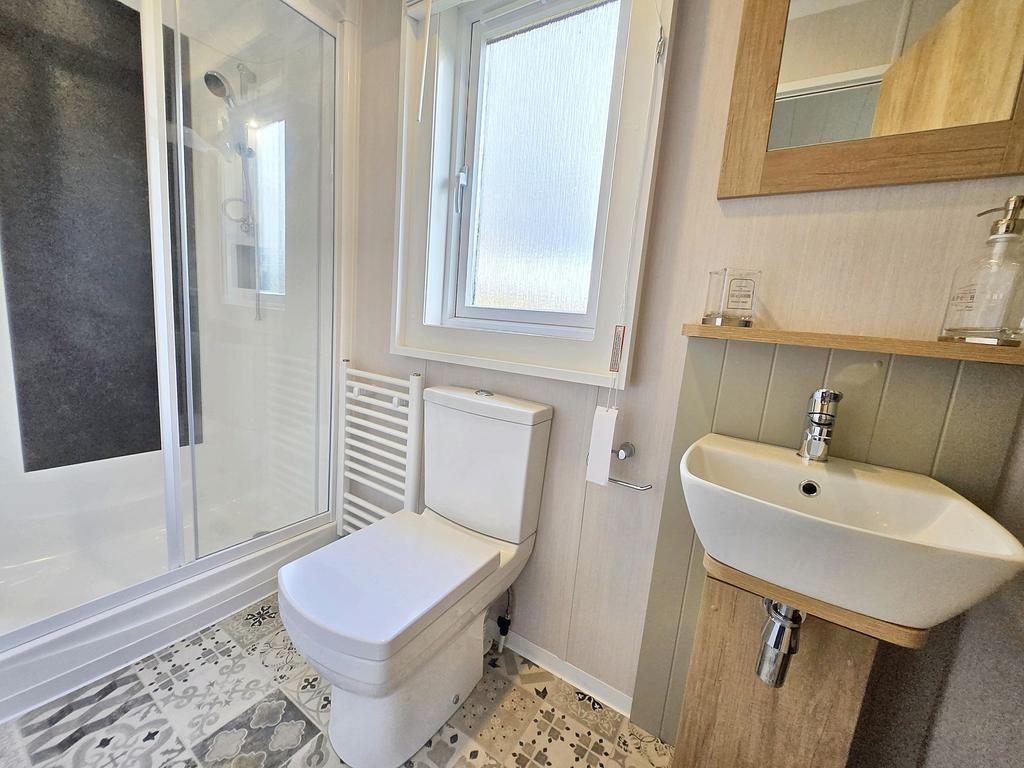 Double glazed windows, ladder style radiator, shower cubicle, wash hand basin, built-in cupboards, low level wc.