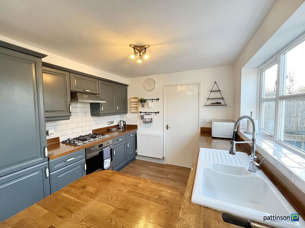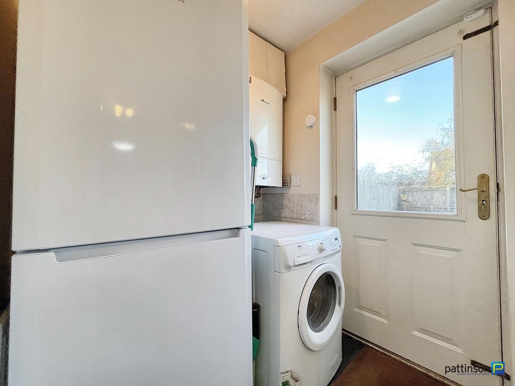 Tile effect laminate flooring, part painted plastered, part tiled walls and part double-glazed timber door to rear garden. Gas-fired combo boiler, space and plumbing for washing machine, space for fridge freezer and internal timber door to cloak room.