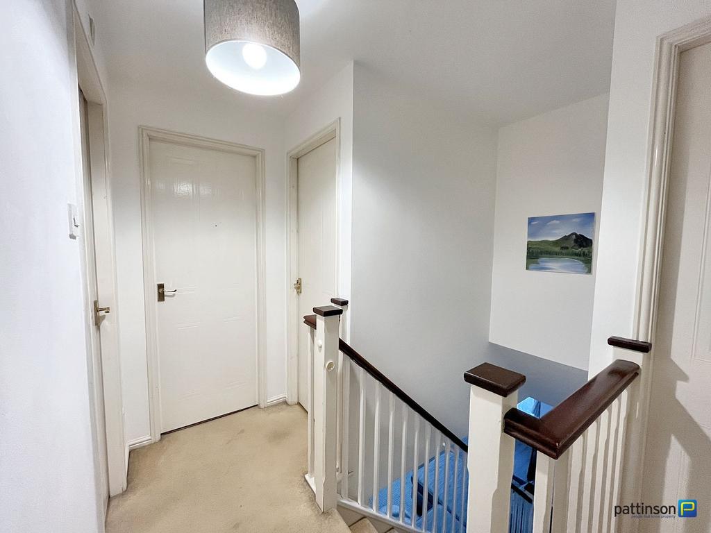 Carpeted floor, painted plastered walls, painted timber spindles and stained timber banister. Loft access.