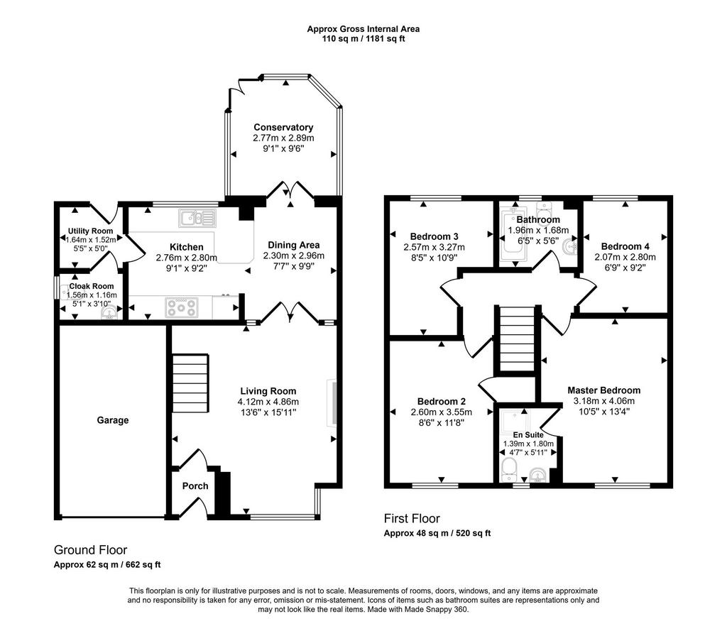 Internally, the property briefly comprises:- entrance lobby, living room, dining room, conservatory, kitchen, utility room, cloak room w/c, stairs to first floor, master bedroom with en-suite, three further bedrooms, and a family bathroom. Externally, gardens to the front and rear, driveway and garage.