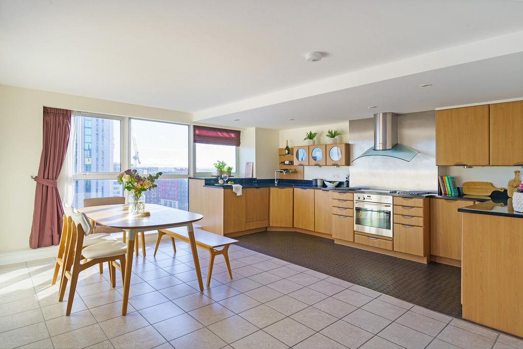 The large welcoming hallway flows seamlessly into an expansive open-plan living, kitchen, and dining area. Here, floor-to-ceiling windows flood the space with natural light and frame views of Birmingham's skyline. This south-facing haven is thoughtfully equipped with air-conditioning for year-round comfort. The design divides the space effortlessly into distinct zones for cooking, dining, and lounging. The kitchen comes fully equipped with everything you need, featuring built-in appliances, granite worktops and space for a large dining table. This expansive room is perfect for hosting gatherings with friends and family.