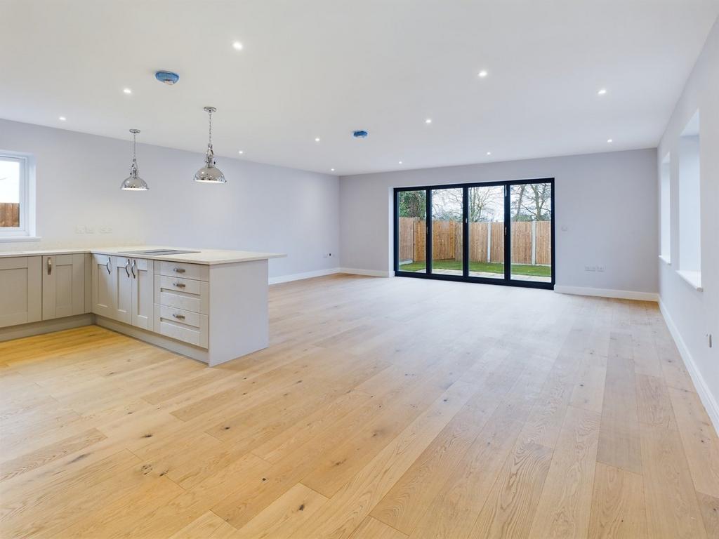 20' 8" x 26' 5" (6.30m x 8.05m) UPVC double glazed windows to both sides. Fitted with a range of wall and base units incorporating a sink and drainer. Built in oven, hob and extractor. Integrated dishwasher. Engineered oak flooring. Bi-folding doors to rear patio/garden. Television point. Telephone point. door to utility room.
