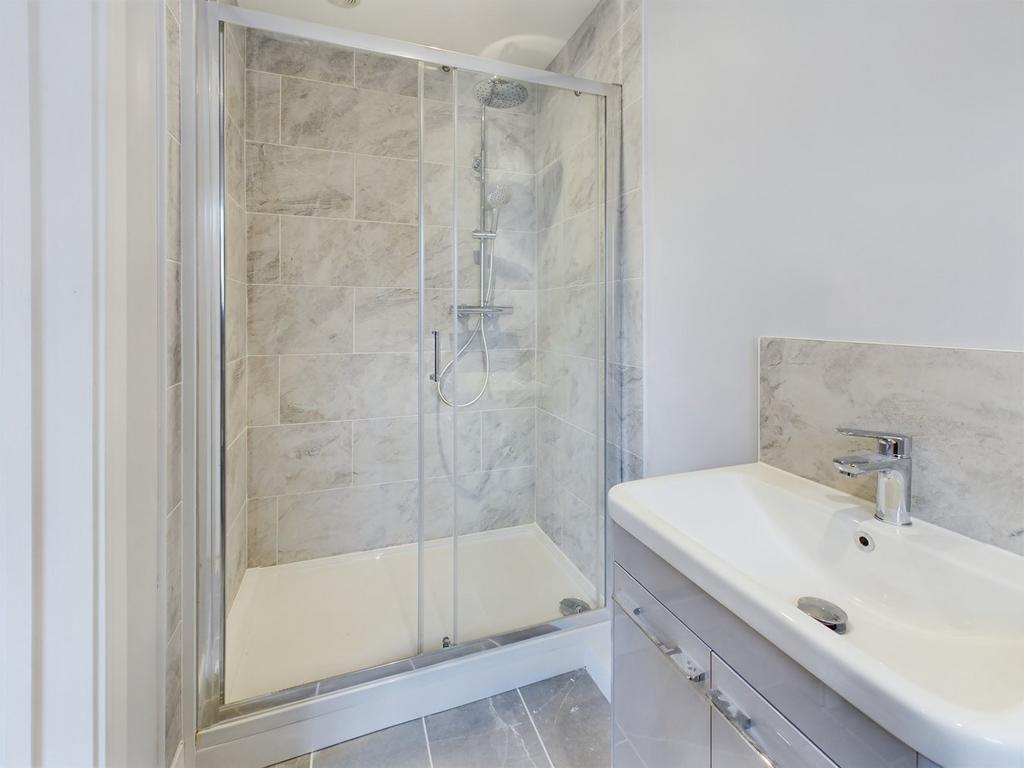 4' 4" x 9' 6" (1.32m x 2.90m) UPVC double glazed window to side. Shower cubicle. Wash hand basin. W.C.