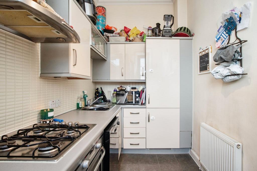 Internally the property comprises a welcoming entrance hall with an intercom entry system, giving access to a spacious reception room with two sash windows, a modern well-appointed kitchen fitted with high gloss units and integrated appliances, two double sized bedrooms each offering plenty of space for furniture with two sash windows and one having a modern en-suite shower room, and a modern tiled bathroom suite with a shower over the bath.