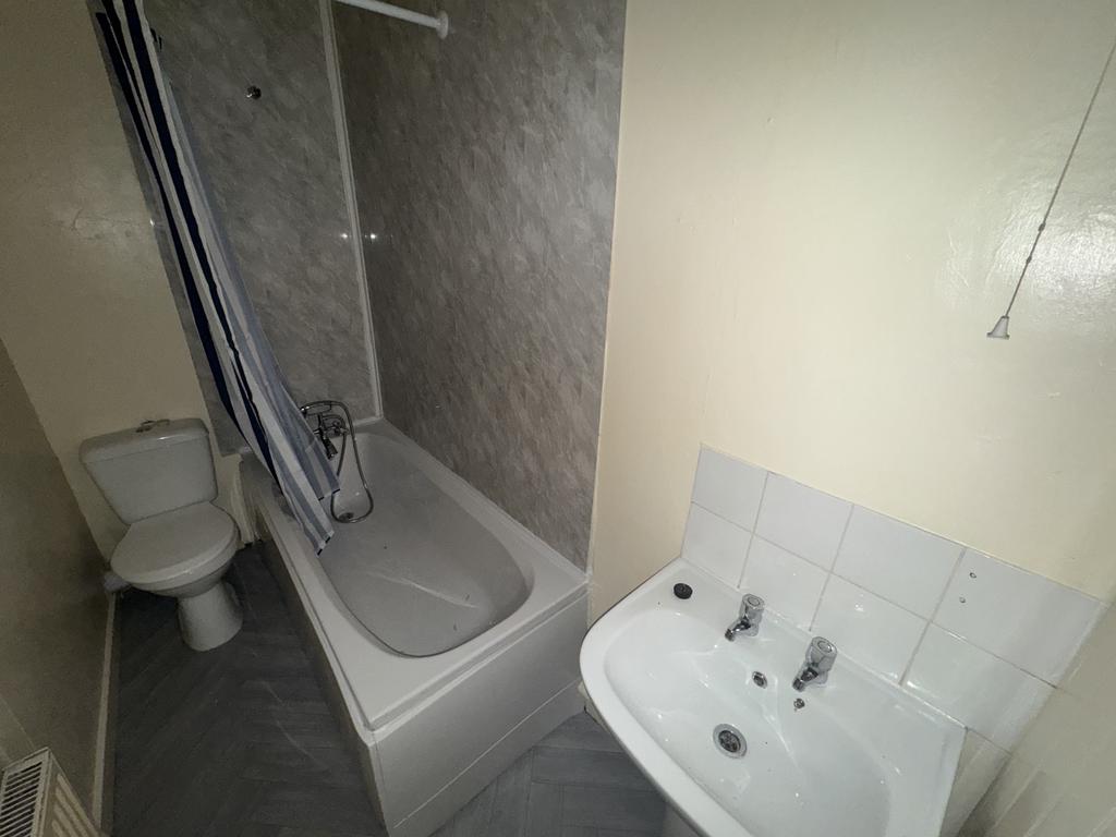 Bathroom. 2.87m x 2.42m, Gas central heated radiator, bath with over bath shower, WC, wash hand basin.