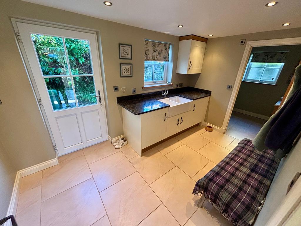 12' 5" x 7' 5" (3.78m x 2.26m). With fitted Shaker units with double Belfast sink with mixer taps, tiled flooring, spot lighting, UPVC rear entrance door.