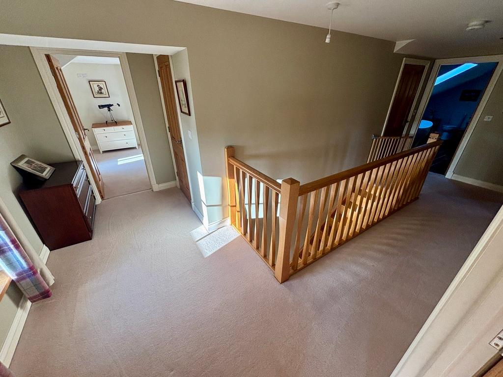 With airing cupboard housing the hot water cylinder and immersion, separate linen cupboard with hardwood shelving.