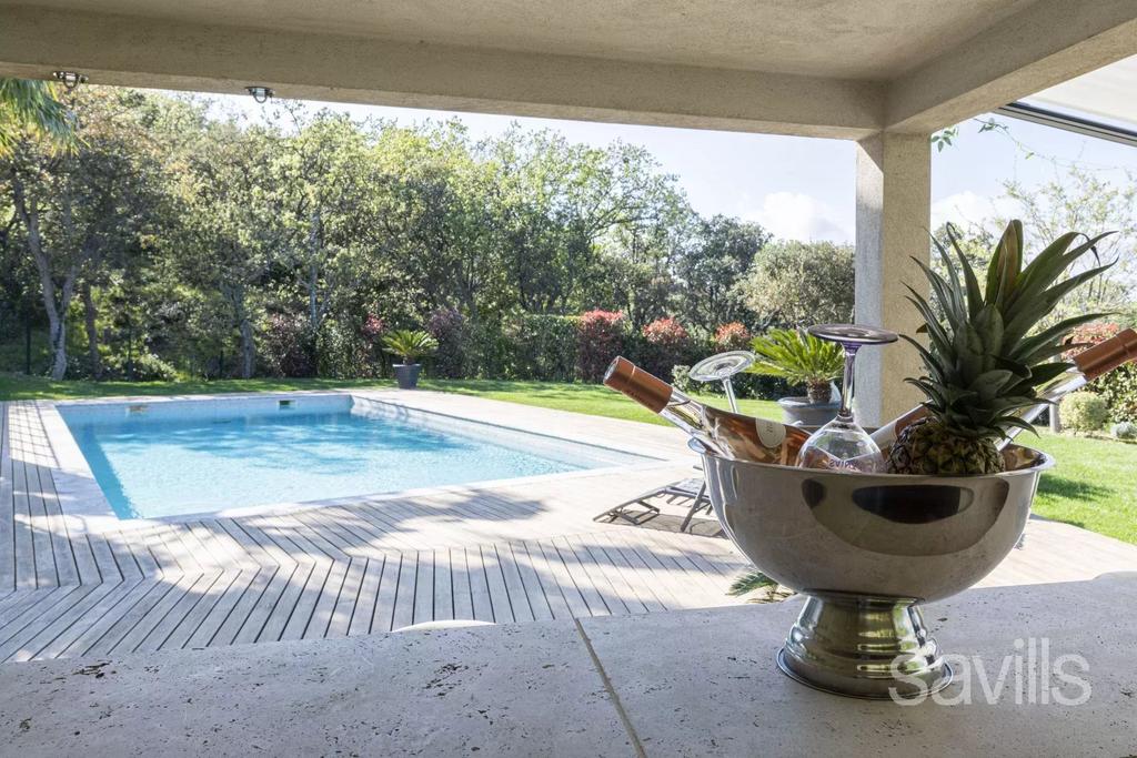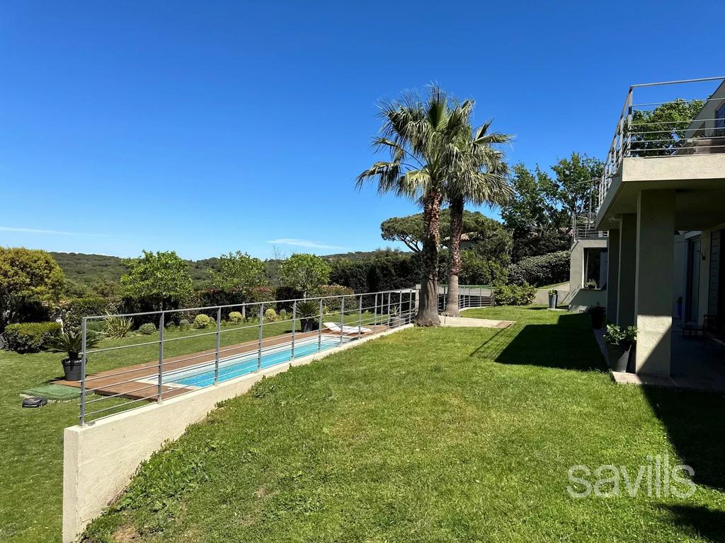 Ideally located in a residential area within easy reach of l'Escalet beach and close to Pampelonne, this contemporary villa offers an intimate, leafy setting with uninterrupted views over the surrounding countryside. Spread over two levels, the property has a total floor area of around 370 sq m, including 80 sq m of outdoor terraces (subject to verification). On the main level, you will find an entrance hallway, a living room that opens onto a terrace, a fully fitted kitchen and a dining room that also opens onto a terrace. The master bedroom en suite has a private balcony. On the garden level, the villa has four en-suite bedrooms, each with direct access to the outdoors, a lounge area, plus a laundry room and a gym. Outside, the landscaped garden, measuring approximately 2,344 sq m (subject to verification), features a 12 m x 5.5 m swimming pool, numerous terraces and a closed garage, as well as a pool house.