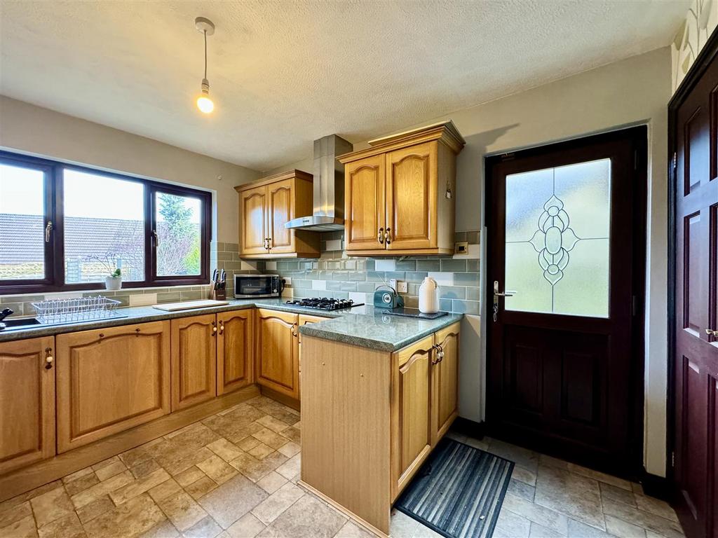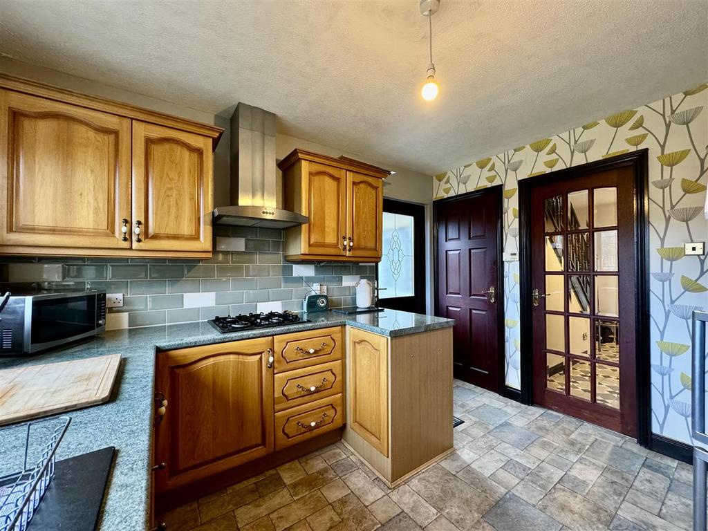 Kitchen - Positioned to the rear of the property with views to the garden is the kitchen which is fitted with timber wall and base units, contrasting roll top work surfaces and metro tile splashbacks. Integral appliances include electric cooker with four ring gas hob, an overhead extractor and a dishwasher. There is space for a fridge freezer and plumbing for a washing machine. An under stairs cupboard provides excellent storage for household items, there is vinyl to the floor and a doors lead through to dining room and entrance hallway. An external door opens to the rear patio.