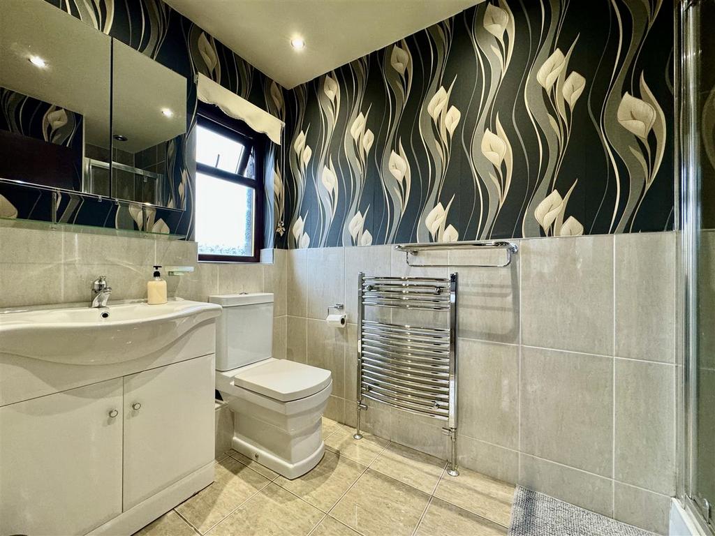 En Suite Shower Room - Comprising of a white three piece suite including a shower cubicle with glass screen, vanity hand wash basin with mixer tap and low level W.C. Partially tiled walls, obscure glazed side facing window, chrome heated towel radiator, complimentary tile flooring underfoot, spotlights to the ceiling and a door leads through to bedroom one.