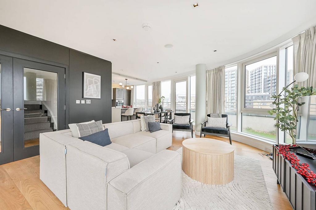 LONG LET. Attractive 3 bedroom penthouse apartment arranged over three floors of a modern riverside development, providing bespoke fixtures, a private terrace and balcony with river views, and use of a communal gym.