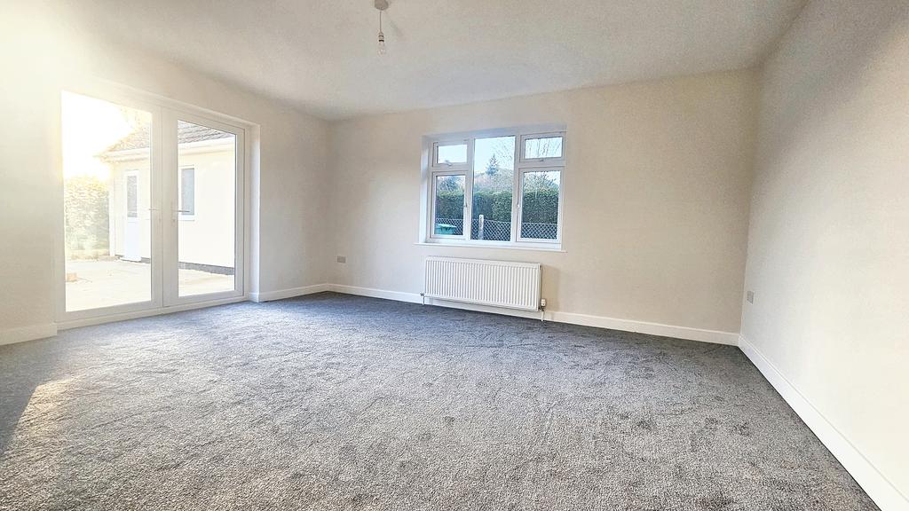 Open plan DINING AND LIVING AREA with two radiators, TV point, six power points, door to reception hall, window and glazed double doors onto the south facing patio and garden.