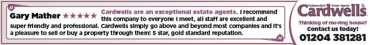If you are thinking of selling or letting a property, perhaps Cardwells Estate Agents Bolton can be of assistance? We offer free property valuations, which in this ever-changing market may be particularly helpful as a starting point before advertising your property sale. Just call us[use Contact Agent Button], [use Contact Agent Button] or visit: and we will be pleased to make an appointment to meet you. It's likely we have potential buyers already on file who we can contact as soon as the property is marketed with us.