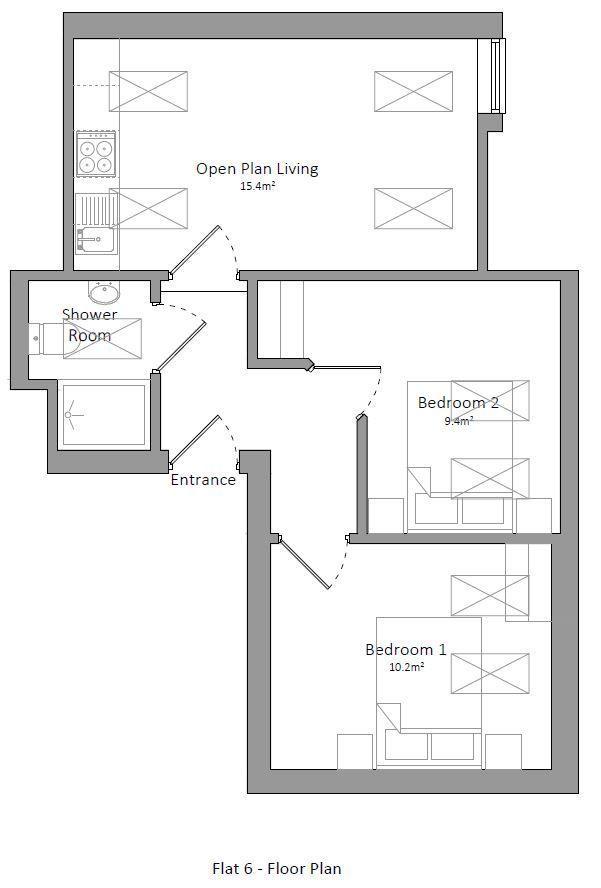 The development is situated on the side of a former printing factory and uses much of the character of this in the apartments. The apartment is stylishly decorated throughout and comes fully furnished. There is a kitchen/living room that comes with all white goods including washer/dryer. The shower room also features an interior design finish with matt black taps and waterfall shower.