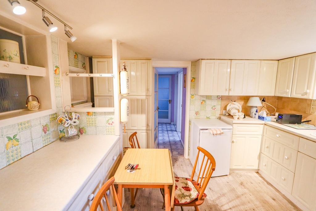 11' 0" x 10' 7" (3.35m x 3.23m) with window taking in views to the rear and fitted with a comprehensive range of base and wall mounted units with spaces and plumbing for appliances. A working surface incorporates a 1 1/2 bowl acrylic sink with mixer tap and drainer, wall mounted water heater and extractor fan above the cooker space. A glazed door leads through to a