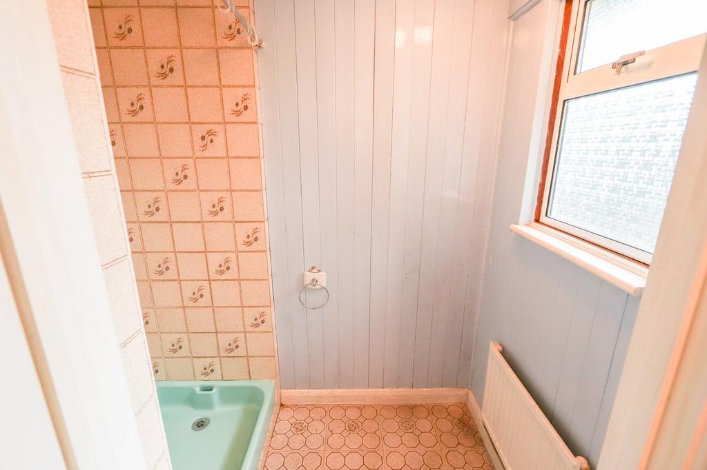 6' 3" x 4' 0" (1.91m x 1.22m) with obscured window to rear, part panelled and fitted with a tiled shower enclosure.