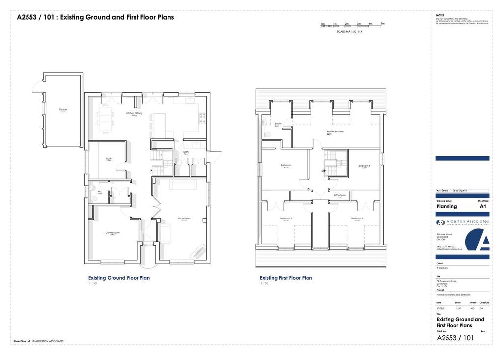 Attached to the particulars are the architect plans for potential extension into the loft for a master suite with en-suite bathroom and dressing area. Alongside this, are plans for an extension to the side with a connected double storey annex with bedroom, kitchen and bathroom and a further extension to the rear.