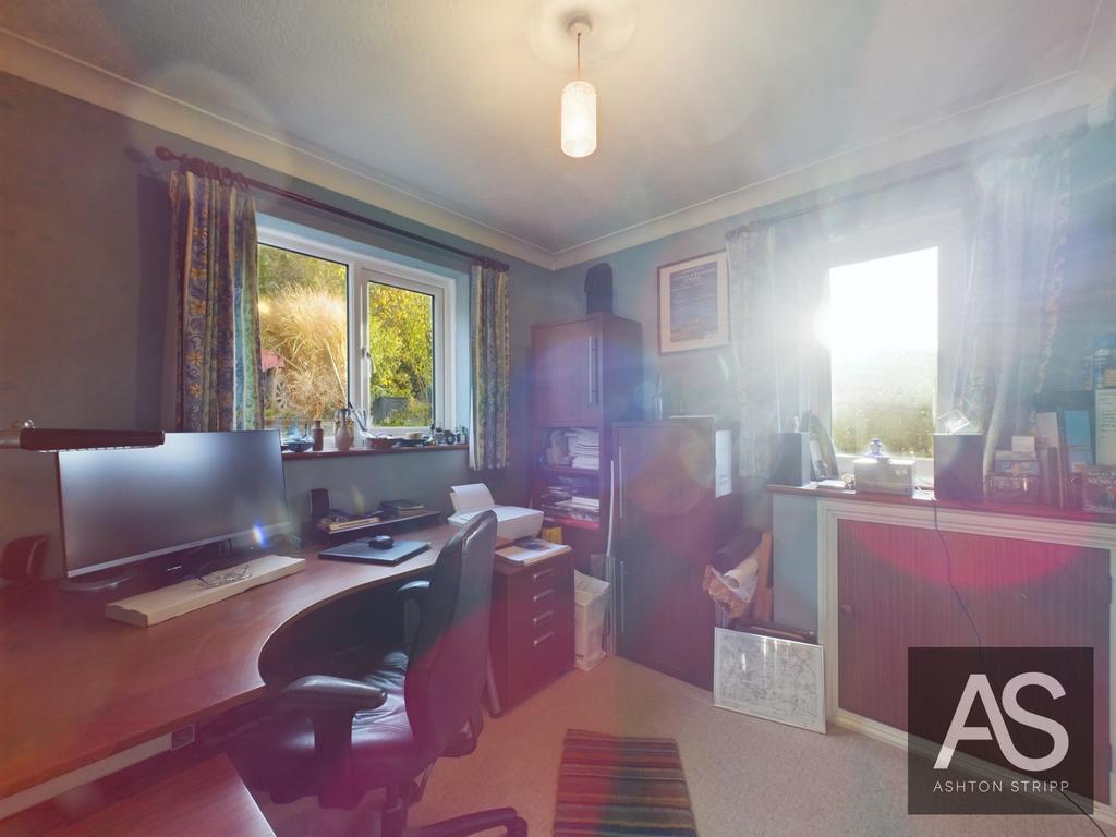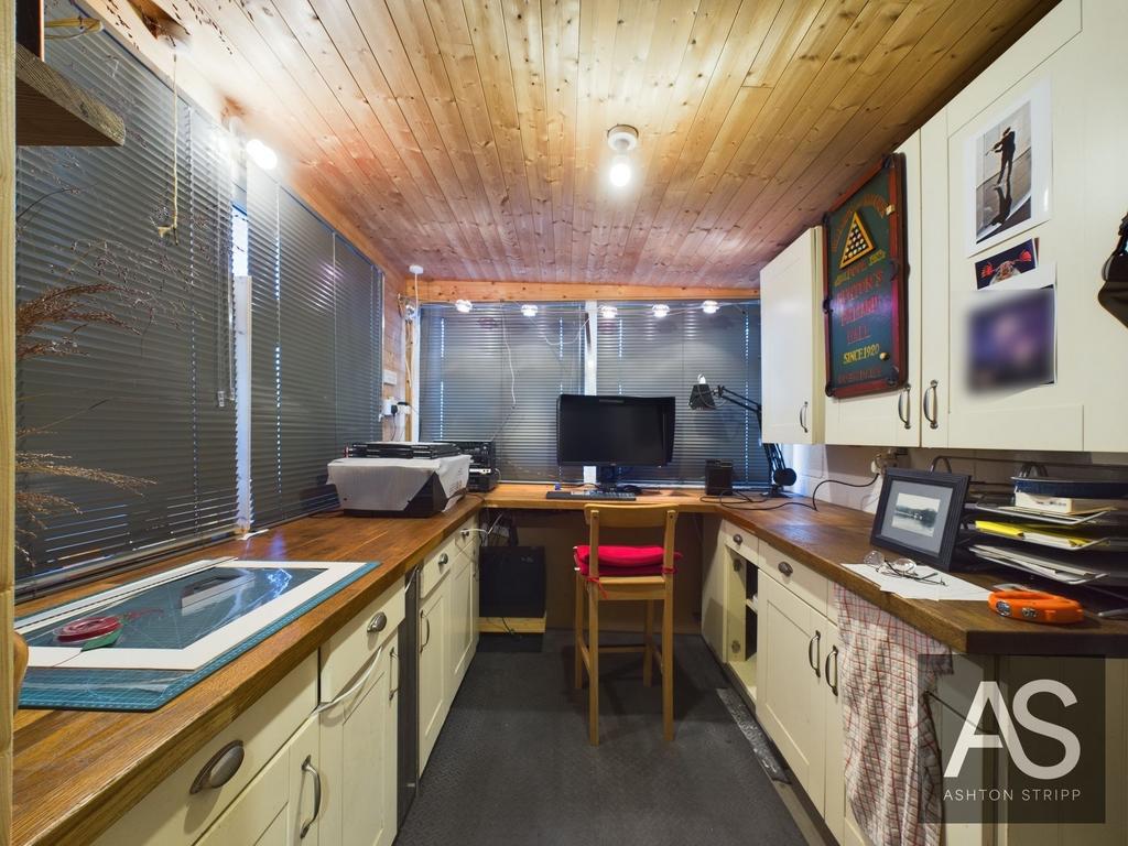 Study/Bedroom 5: A cozy room with a log burner, double-glazed window, and adjacent storage cupboard, offering potential for conversion to a bedroom with ensuite.