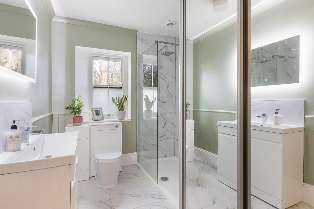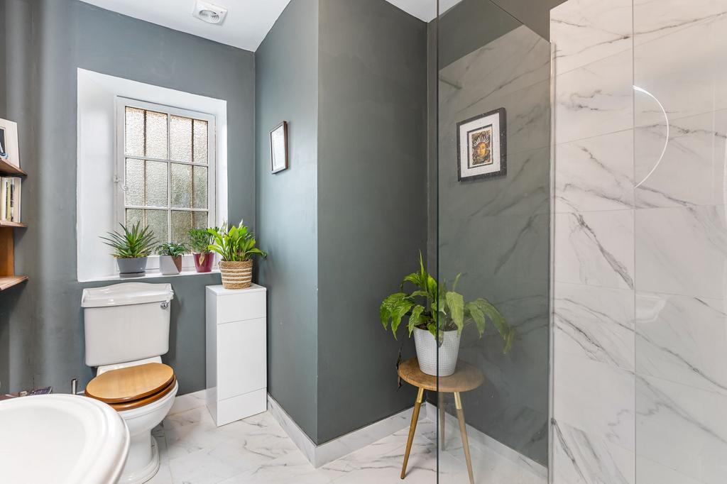 Two further versatile rooms are utilised by our clients as a ground floor BEDROOM with cast iron fireplace, and cosy LOUNGE with marble fireplace, fitted storage, exposed floorboards and tall sash window with shutters. A contemporary SHOWER ROOM with low threshold shower with body spray and rain head, WC, basin, tiled floor, and obscure window. This section has potential to provide a self contained annexe with its own private entrance door, subject to any necessary permissions.