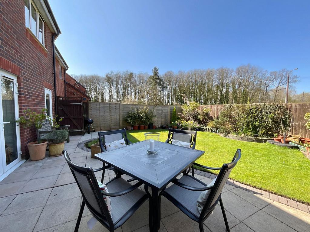 - The rear garden offers a generous patio and lush lawn with treetop views, creating the perfect spot for stargazing or outdoor play.