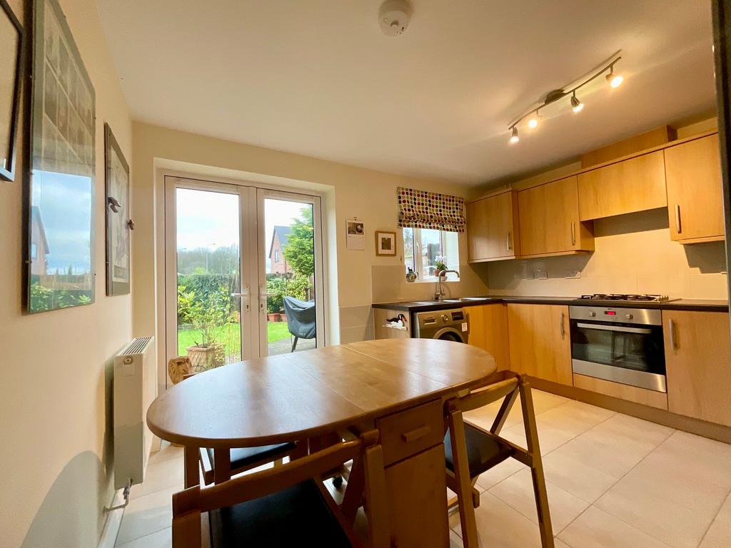 - The dining kitchen has built-in appliances and French doors that open onto the garden, ideal for family meals or hosting guests.
